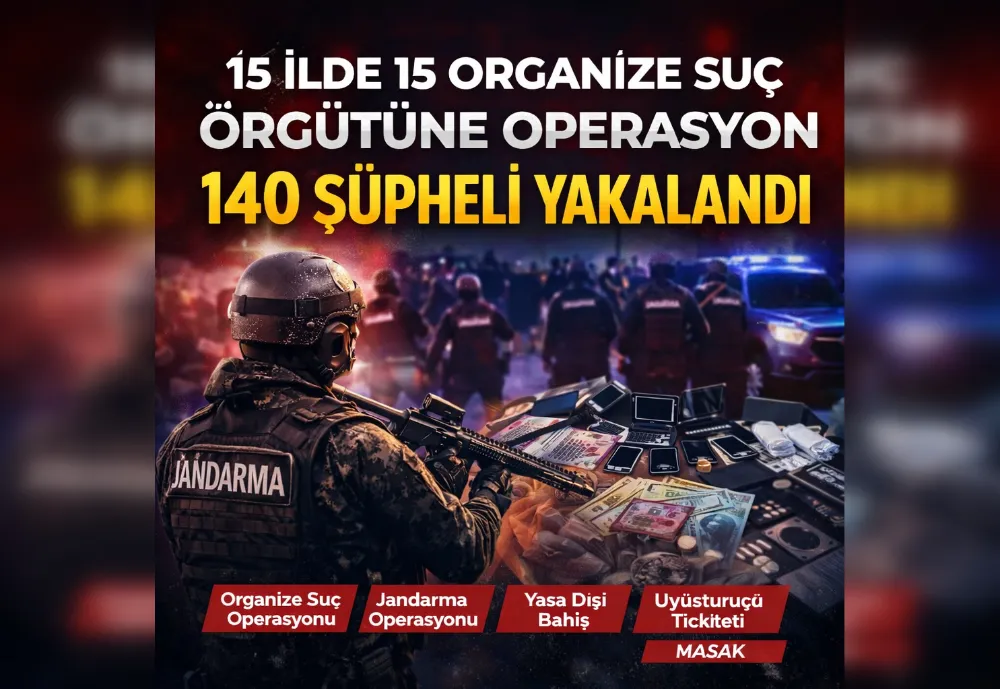 Türkiye genelinde organize suç yapılanmalarına yönelik kapsamlı bir operasyon dalgası başlatıldı. İçişleri Bakanlığı koordinasyonunda yürütülen çalışmalar kapsamında, 15 ilde faaliyet gösterdiği belirlenen 15 ayrı organize suç örgütüne eş zamanlı baskınlar düzenlendi. Son bir haftada gerçekleştirilen operasyonlarda toplam 140 şüpheli yakalanarak gözaltına alındı.