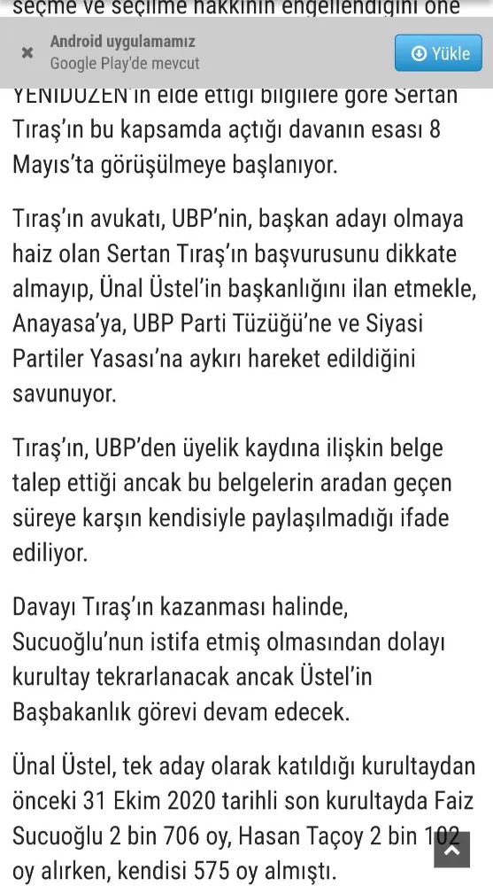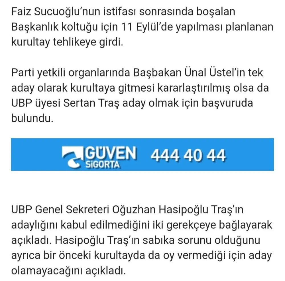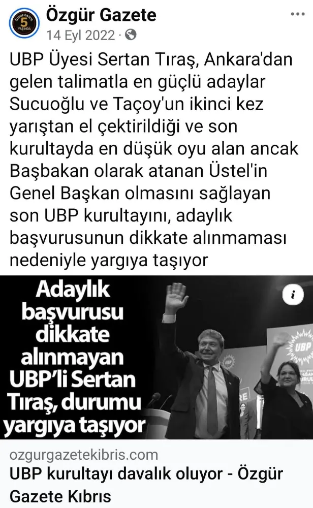 Aşağıda, SERTAN TRAŞ'ın UBP kongresine, adaylığı, adaylığının reddi ve mahkemede açtığı dava ile ilgili haberler var..