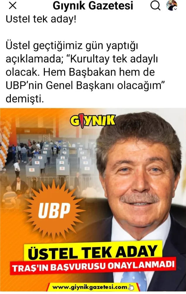 TRAŞ, UBP kongresinin iptali için açtığı davayı geri çekti ve hem sosyal medya hesabında, hem de bölgede, Ünal Üstel için çalışmaya, ona övgüler düzmeye başladı...