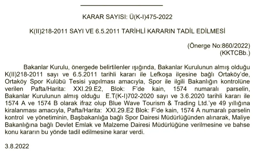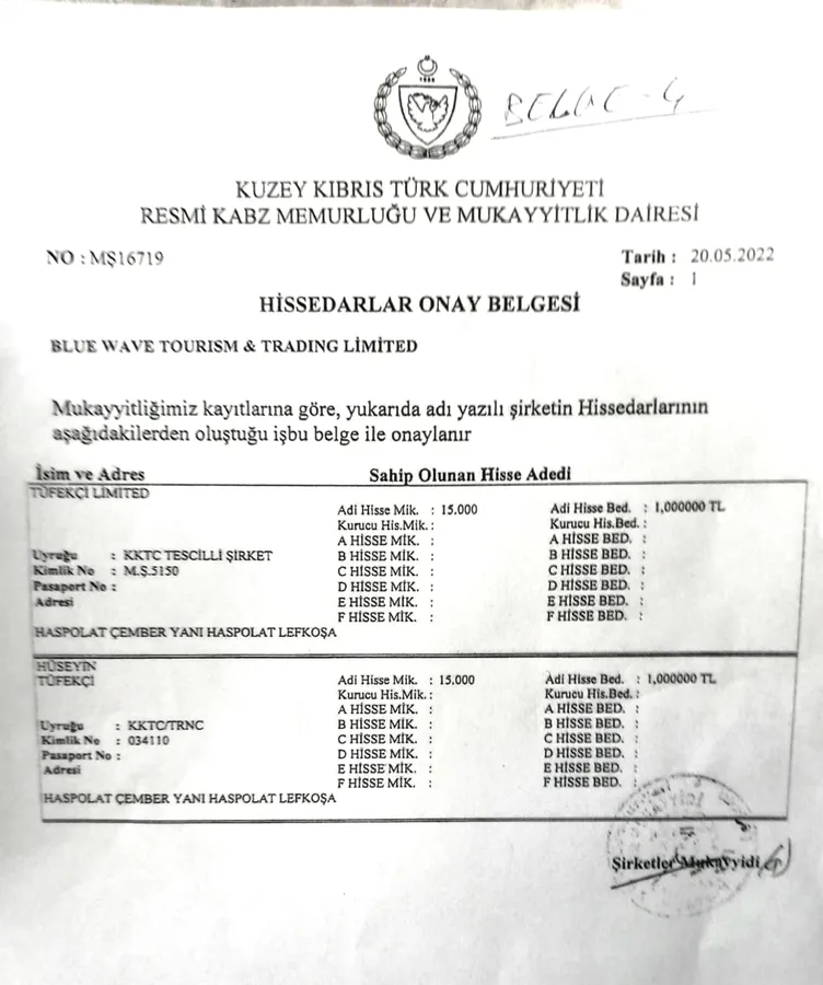 TÜFEKÇİ, ORTAKÖY FUTBOL SAHASININ KALE DİREĞİ DİBİNDE YAPTIĞI 6 KATLI MERKEZDEN VE DÜKKANLARDAN HER YIL MİLYONLARCA STERLİN KAZANIRKEN, DEVLETE VERECEĞİ YILLIK KİRA SADECE 1 DOLAR OLACAK VE BUNA HER YIL YÜZDE 3 ARTIŞ YAPILACAK.