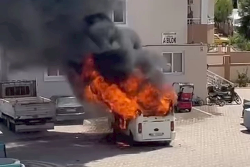 Edinilen bilgilere göre, park halindeki minibüste henüz belirlenemeyen bir nedenle yangın çıktı.