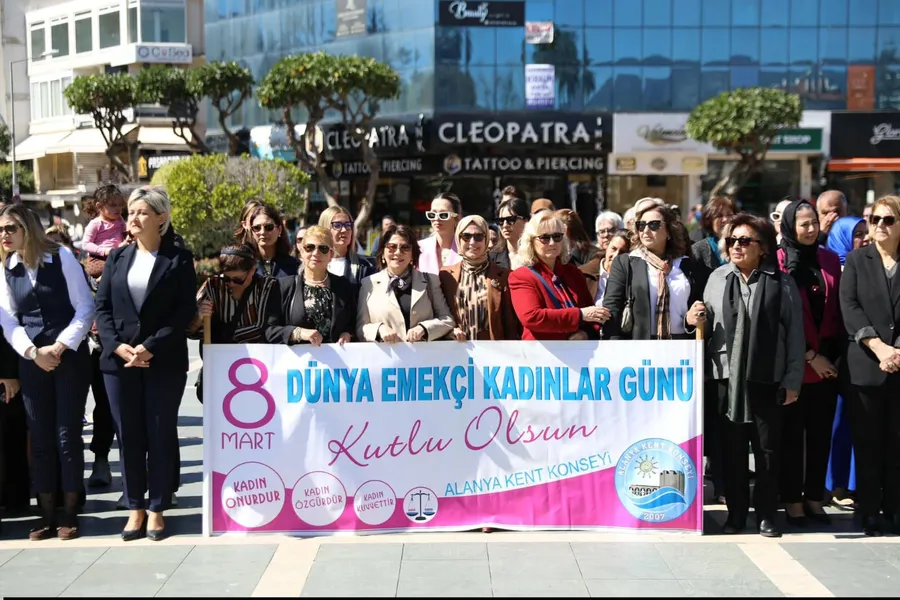 8 Mart Dünya Emekçi Kadınlar Günü kapsamında, Alanya Kent Konseyi öncülüğünde Alanya Belediyesi, siyasi partilerin kadın kolları, kamu kurumları, kadın dernekleri, sivil toplum kuruluşları ve oda temsilcilerinin katılımıyla Atatürk Anıtı önünde anlamlı bir anma töreni gerçekleştirildi. Yoğun katılımla gerçekleşen törende kadınlar eşitlik, dayanışma ve yaşam hakkı için ortak bir duruş sergiledi.