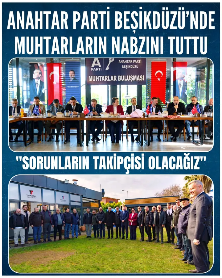 Anahtar Parti Beşikdüzü İlçe Teşkilatı tarafından düzenlenen istişare toplantısında muhtarlar mahallelerin sorunlarını dile getirdi. Genel Başkan Yardımcısı Nigar Ayyıldız, muhtarları yerel demokrasinin temel taşı olarak nitelendirdi.