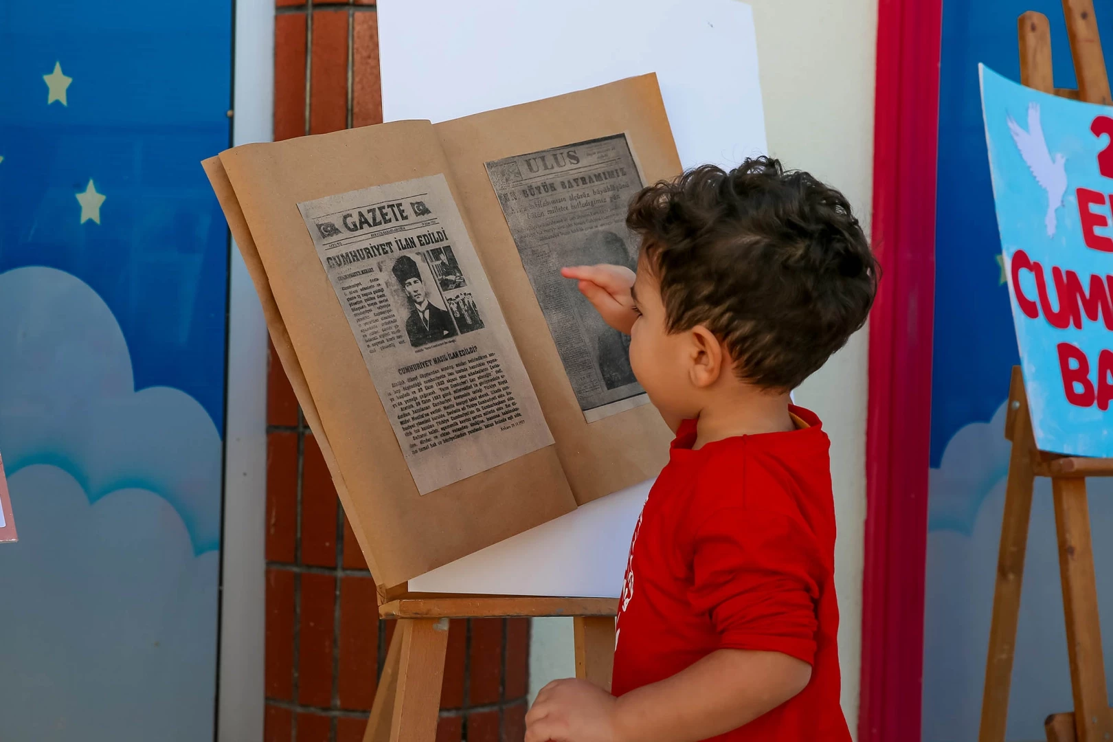 Ankara'da Keçiören Belediyesi Gül Kreş Adası öğrencileri tarafından 29 Ekim Cumhuriyet Bayramı’na özel açılan sergiyle sınıflar ve kreş bahçesi kırmızı beyaza büründü.