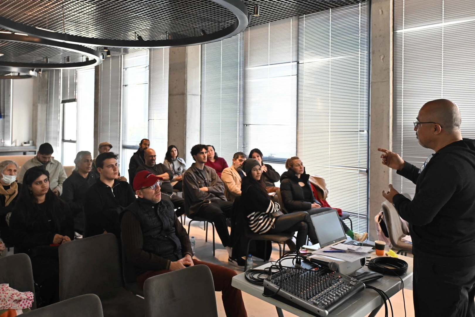 Akdeniz Üniversitesi İletişim Fakültesi Öğretim Görevlisi ve Ezber Bozan Genç Dino podcastinin yapımcısı Suat Erdöl’ün yönettiği atölyede, katılımcılara temel düzeyde teknik eğitim verildi. Podcastin hayatın içindeki yeri, nasıl üretileceği ve uygulanabilirliği üzerine bilgiler paylaşılırken, tema belirleme süreci hakkında da fikir alışverişi yapıldı.