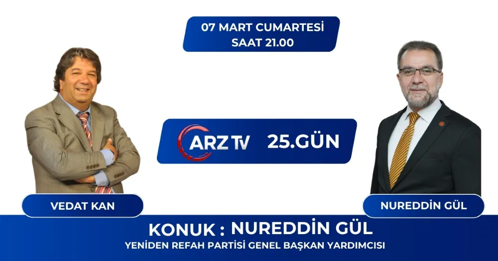 Arz TV’nin gelenekselleşme yolunda emin adımlarla devam etmekte olan yayını "25. Gün Ramazan Özel" programı, şehrin ve ülkenin nabzını tutmaya devam ediyor. Gazeteci/Yazar Vedat Kan’ın hazırlayıp sunduğu programın konuğu, Yeniden Refah Partisi Genel Başkan Yardımcısı Teşkilat Başkanı Nureddin Gül oldu. Erzurum’un sosyo-ekonomik kodlarından Orta Doğu’daki gerilime kadar geniş bir yelpazede gerçekleşen söyleşi, izleyicileri ekran başına kilitledi.