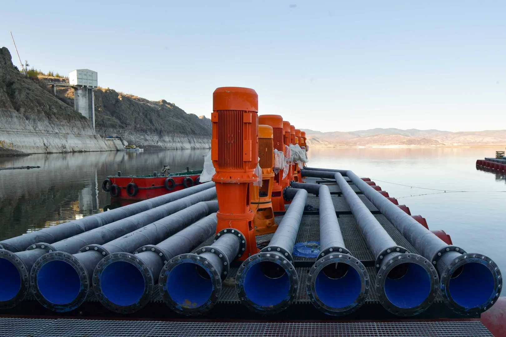 Çamlıdere Barajı'nda yaklaşık 400-500 milyon metreküp su olduğunda bunun yüzde 20’si hatta daha fazlası da bu ölü hacim dediğimiz, aslında su alma yapısının altında kalan kısım. Burada herhangi bir sorun yok. Sadece suyu kendi cazibesiyle kanala aktaramıyoruz. Onu aktarabilmek için de bir sistem kurulması gerekiyor. Bu sistemde bu sol tarafımda gördüğümüz yüzer platformlar vasıtasıyla dikey milli pompalarla suyu alttan alıyoruz ve yukarıdaki su alma yapısının içerisine boşaltıyoruz. Oradan da tünele girip Ankara'ya su geliyor. Burada yaklaşık olarak dediğim gibi 110 milyon metreküp civarında bir rezerv var. Bu rezerv Ankara için önemli bir rezerv. Özellikle kurak dönemlerde başvurulan rezervlerden bir tanesi.”