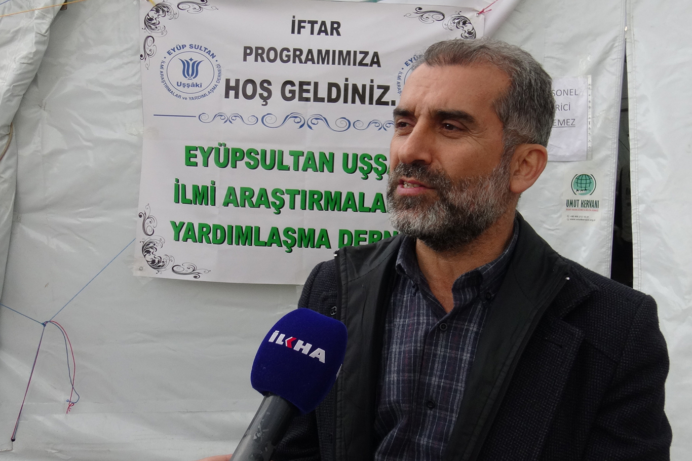 İstanbul'da faaliyet yürüten Eyüp Sultan Uşşaki İlmi Araştırmalar ve Yardımlaşma Derneği Başkan Yardımcısı Mehmet Bahattin Gümüş, “İstanbul'da her sene düzenli olarak iftar yemeği veriyorduk. Tabi deprem olunca yönetim olarak deprem bölgesinde iftar yemeği vermeye karar verdik. Sağ olsun burada Umut Kervanı ve Avrupa Yetim Eli ile temasa geçtik, destek olacaklarını söylediler. Burada günlük iftar yemeğinin masraflarını karşılıyoruz. Zekât ve fitrelerini de Yetimler Vakfı Malatya Temsilcisi Erkan Dönmez hocamızla birlikte 50 aileye ulaştırdık. Gerçekleştirdiyse bir duyguyu ilk defa yaşıyorum. Biz hep alınıp korunmak ama demek ki böyle yapmamak lazım. Bire bir kendi elinle vermek, o insanların insanlarını hissetmemiz lazım. Böyle bir duyguyu ilk defa kullanmak. Allah'ın izniyle 5 gün boyunca burada iftar yemeği molası.” diye konuştu.