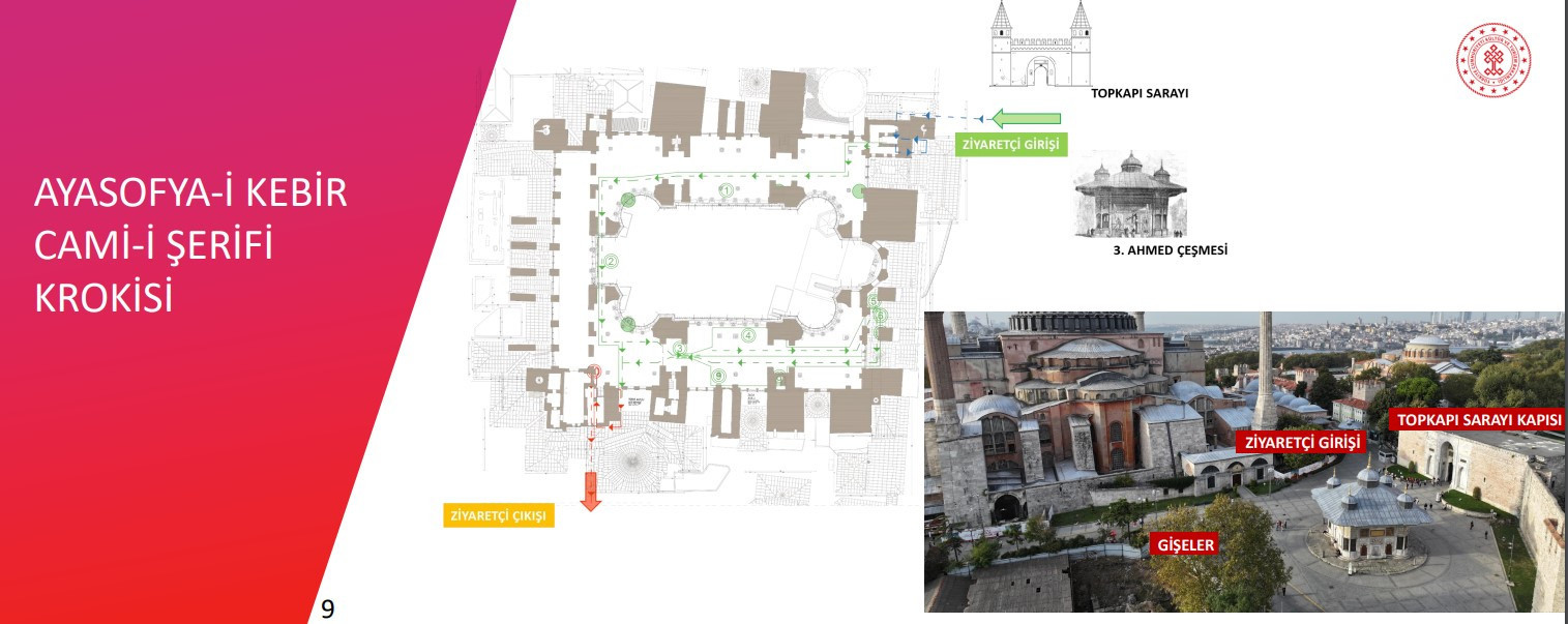 Bakan Ersoy, açıklamasında "Ayasofya-i Kebîr Câmi-i Şerifi'nde Unesco’nun tavsiyesi üzerine 15 Ocak 2024 tarihinden itibaren ziyaretçi yönetim planı uygulamasına geçiyoruz. Ayasofya-i Kebîr Câmi-i Şerifi’nde ziyaret ve ibadet kalitesinin artırılması sağlanacak" dedi.