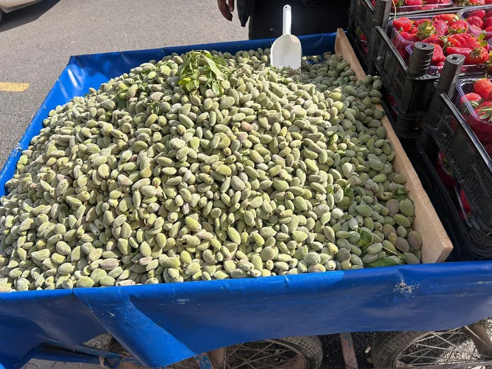 Tezgahında badem satarak geçimini sağlayan Mustafa Bilgin, taze çağla bademlerin kilosunun bu yıl 500 TL'den satıldığını belirtti.