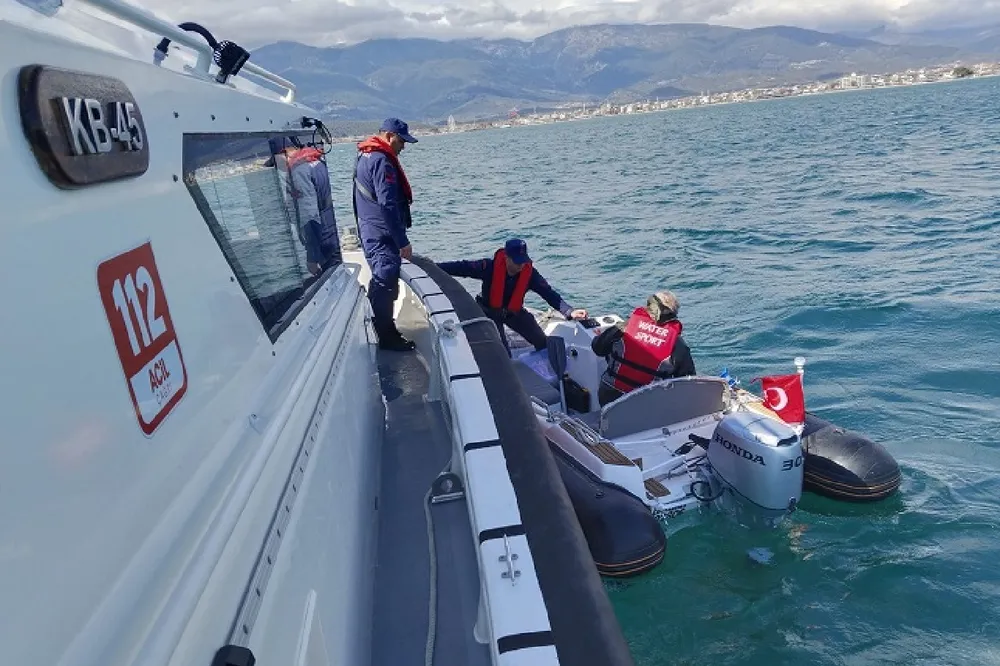 Balıkesir’in Edremit ilçesi açıklarında, pervanesine halat dolanan lastik bottaki kişi, Sahil Güvenlik ekiplerince kurtarıldı.