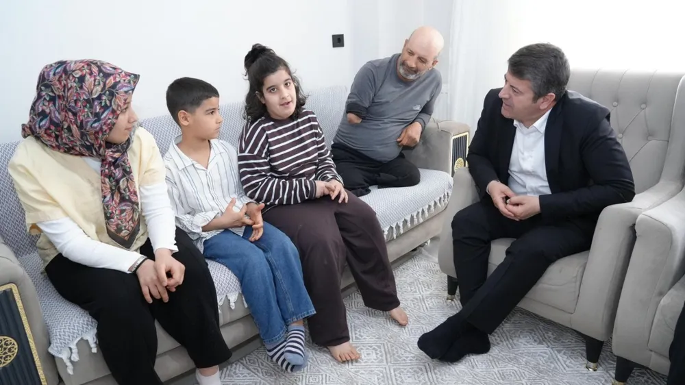 Adıyaman Belediye Başkanı Abdurrahman Tutdere, bayram programı kapsamında 6 Şubat depremlerinde uzuvlarını kaybeden Zabit isimli vatandaşı ve ailesini evlerinde ziyaret etti.