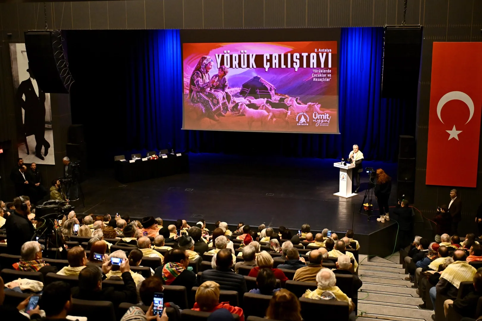 Antalya Muratpaşa Belediyesi’nin geleneksel hale getirdiği Yörük Çalıştayı’nın 8’incisi, bu yıl “Yörüklerde Çocuklar ve Aksaçlılar” temasıyla Türkan Şoray Kültür Merkezi’nde başladı. Açılış konuşmasını yapan Muratpaşa Belediye Başkanı Ümit Uysal, Yörük kültürünün tarihsel, toplumsal ve çağdaş önemine dikkat çekerek, “Kara çadır, bu ülkenin vicdanıdır” dedi.