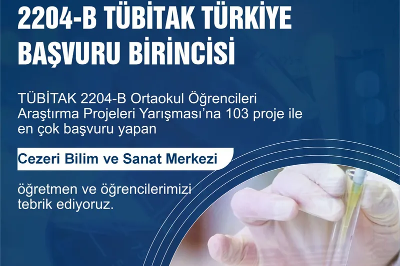 Cezeri BİLSEM, 103 proje başvurusu ile Türkiye genelinde en fazla başvuru yapan kurum olarak Türkiye birincisi oldu.