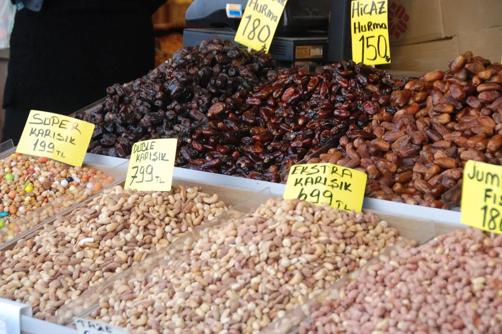 “Geçen senelere göre daha zayıf, daha az hareket var ama orta seviyede ilerliyor. Şeker çeşitlerimizi bu hafta dükkâna koyduk. Genel olarak orta kalitede şekerlerimiz satılıyor. Bazı iyi şekerler var, kilosu 1000 TL bandında; insanlar bunları alamıyor. Yani bu durum 3-5 sene öncesine kadar böyle değildi. Biz burada genelde kiloyla satış yapıyorduk; 1 kg olsun, yarım kilo olsun, 2 kg olsun insanlar evlerine rahatlıkla alabiliyordu. Ama ne yazık ki 1 kg iyi bir kuruyemiş bir insanın bir günlük maaşına tekabül ettiği için insanlar kiloyla alamıyor."