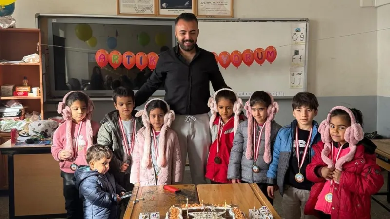 Adıyaman'ın Besni ilçesine bağlı İzollu Köyü İlk ve Ortaokulu'nda görev yapan öğretmen Muhammed Özalp, okuma yazmayı öğrenen 1'inci sınıf öğrencileri için "Artık Okuyorum" etkinliği düzenledi. Yarıyıl tatilinin yaklaşmasıyla birlikte öğrencilerin motivasyonunu artırmak amacıyla gerçekleştirilen etkinlikte, okuma yazmayı öğrenen öğrencilere madalya takıldı, pasta kesilerek başarıları kutlandı.