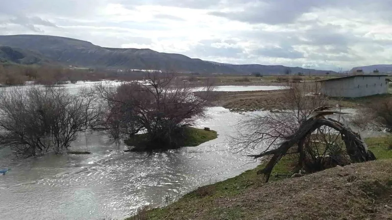 Ankara’nın Beypazarı ilçesinde etkili olan sağanağın ardından dere taştı, ekili araziler sular altında kaldı.