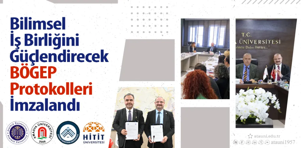 Atatürk Üniversitesinin öncülüğünde yürütülen Bölge Üniversiteleri Araştırma, Geliştirme ve İş Birliği Projesi (BÖGEP) kapsamında, Atatürk Üniversitesi Rektörü Prof. Dr. Ahmet Hacımüftüoğlu; Çankırı Karatekin Üniversitesi, Hitit Üniversitesi ve Amasya Üniversitesini ziyaret ederek her bir üniversite ile ayrı ayrı iş birliği protokolü imzaladı. Protokoller; bilimsel araştırmaların geliştirilmesi, ortak projelerin desteklenmesi ve bölgesel kalkınmaya yönelik akademik iş birliklerinin güçlendirilmesini hedefliy