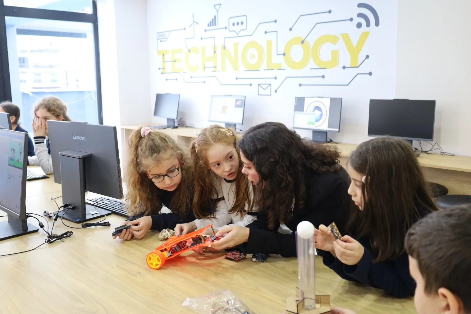 Ana sınıfı ve ilkokul seviyesinde verilen derslerde öğrencilerin yaş grubuna uygun materyaller kullanılıyor. Büyük, renkli ve dikkat çekici eğitim araçları ile bilgisayar ekipmanları çocukların derse olan ilgisini artırıyor.