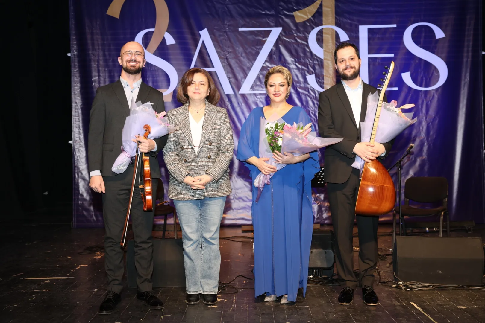 Gecenin sonunda seyircilerden büyük alkış alan sanatçılara, Nilüfer Belediye Başkan Yardımcısı Bukle Erman günün anısına çiçek verdi.