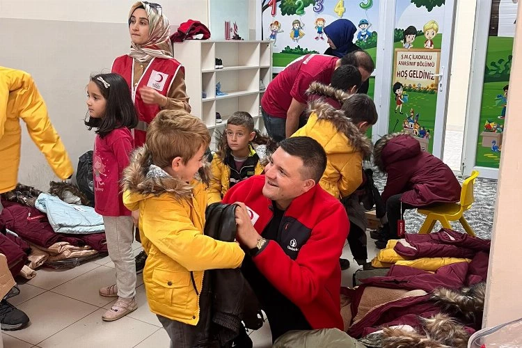 Bursalı iş insanları destekleriyle hazırlanan bot, mont ve diğer kışlık giysiler, Adıyaman’daki Şehit Mesut Çelik İlkokulu’nda eğitim gören 550 öğrenciye dağıtıldı.