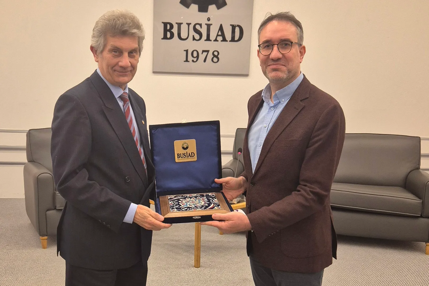 Soruları da yanıtlayan Dr. Vedat Kamer’e Çağdaş Eğitim Kooperatifi'nin “Kır Çiçekleri Okusun Diye” sosyal sorumluluk projesine adına yapılan bağışın sertifikası, BUSİAD Yönetim Kurulu Başkanı Buğra Küçükkayalar tarafından verildi.