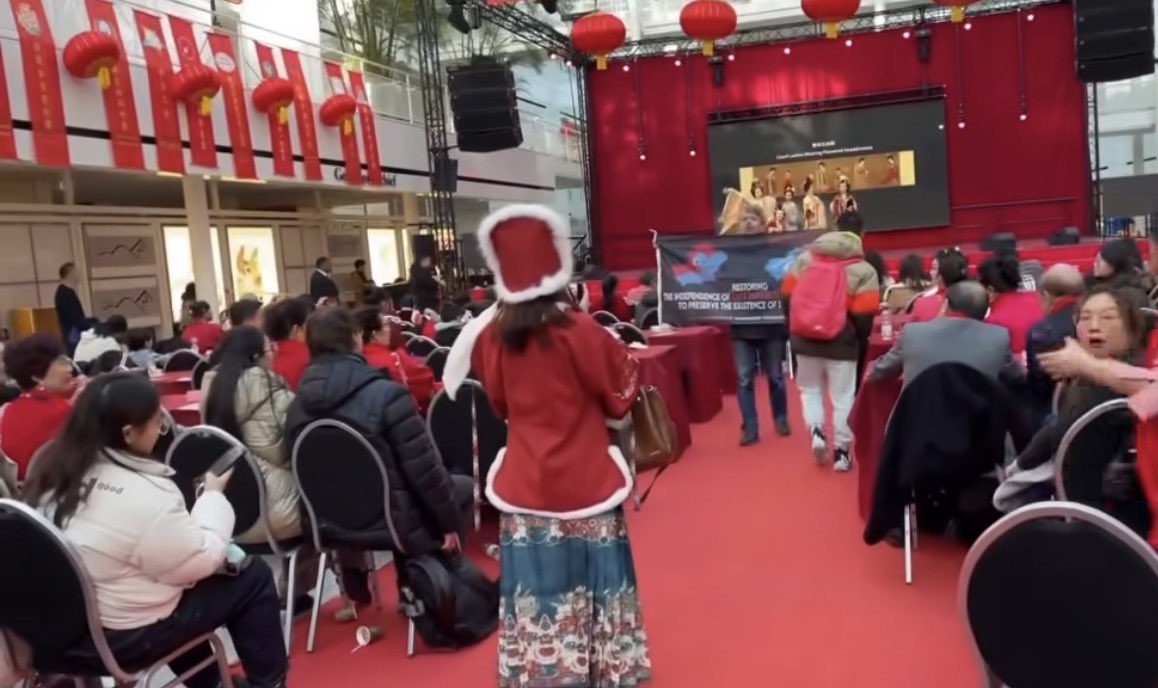 Edinilen bilgilere göre Çin’in Lahey Büyükelçiliği, 14 Şubat’ta Den Haag kentindeki bir hükümet binasında Bahar Bayramı kapsamında bir program düzenledi. Uzun süredir Çin’in Doğu Türkistan’daki uygulamalarına yönelik eleştirileriyle bilinen Abdurrehim Gani, üzerinde Doğu Türkistan bayrağı ve haritası bulunan, “Doğu Türkistan’ın bağımsızlığı Uygurların kurtuluşunun tek güvencesidir” ifadelerinin yer aldığı bir pankartla etkinlik alanına girerek sloganlar attı.