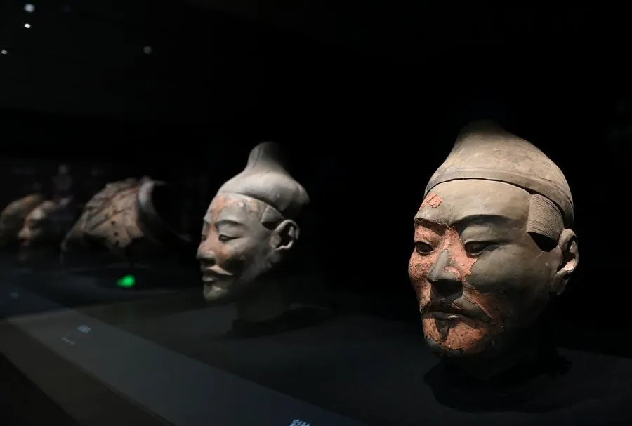 Dans eden bir heykelcik, 8 Eylül 2024'te Çin'in kuzeybatısındaki Shaanxi eyaletinin başkenti Xi'an'daki İmparator Qinshihuang'ın Mozolesi Alanı Müzesi'nde ikonik Terracotta Savaşçıları'nın keşfi ve kazısının 50. yıl dönümünü anan bir sergide görüntüleniyor. (Xinhua/Li Yibo)Yeşil boyalı yüze sahip diz çökmüş bir okçu, 8 Eylül 2024'te Çin'in kuzeybatısındaki Shaanxi eyaletinin başkenti Xi'an'daki İmparator Qinshihuang'ın Mozole Alanı Müzesi'nde ikonik Terracotta Savaşçıları'nın keşfi ve kazısının 50. yıl dönümünü anan bir sergide görüntüleniyor. (Xinhua/Li Yibo)Çin'in kuzeybatısındaki Shaanxi eyaletinin başkenti Xi'an'daki İmparator Qinshihuang'ın Mozolesi Alanı Müzesi'nde ikonik Terracotta Savaşçıları'nın keşfinin ve kazısının 50. yıl dönümünü anan bir sergide bir performans sanatçısı figürü görülüyor, 8 Eylül 2024. (Xinhua/Li Yibo)