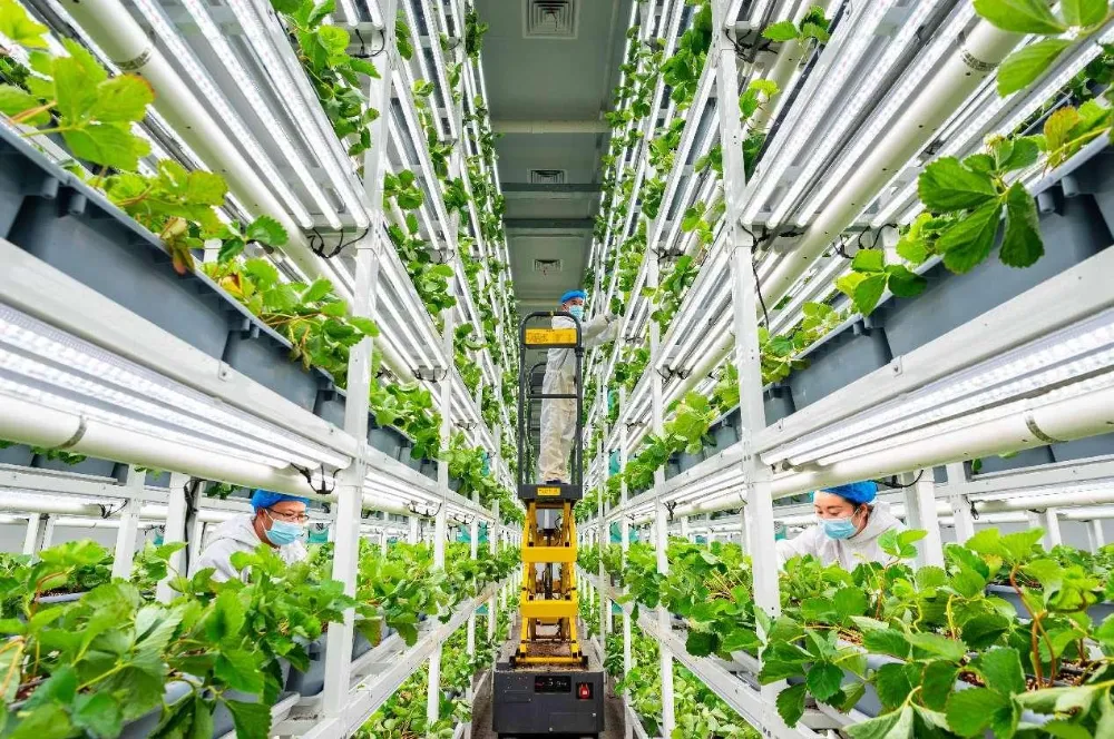 Çin'in kuzeyindeki İç Moğolistan özerk bölgesindeki Hohhot'ta modern bir tarım parkında dijital bir bitki fabrikası faaliyet gösteriyor. (People's Daily Online/Ding Genhou)