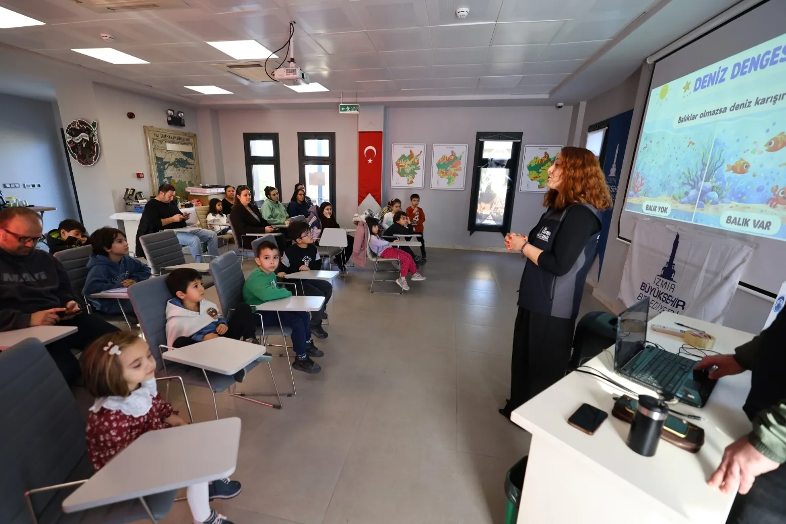 İZMİR (İGFA) - Su Ürünleri Yüksek Mühendisi Nesrin Ayrancı ve Su Ürünleri Teknikeri Mert Kandemir’in sunumuyla gerçekleşen etkinlikte, çocuklara denizlerin gizemli dünyası eğlenceli ve öğretici bir dille anlatıldı.