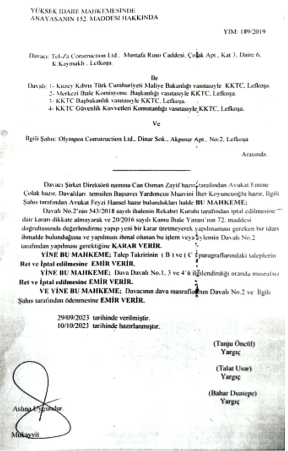 TEL-ZA Ltd adlı şirket ihaleyi aldı...