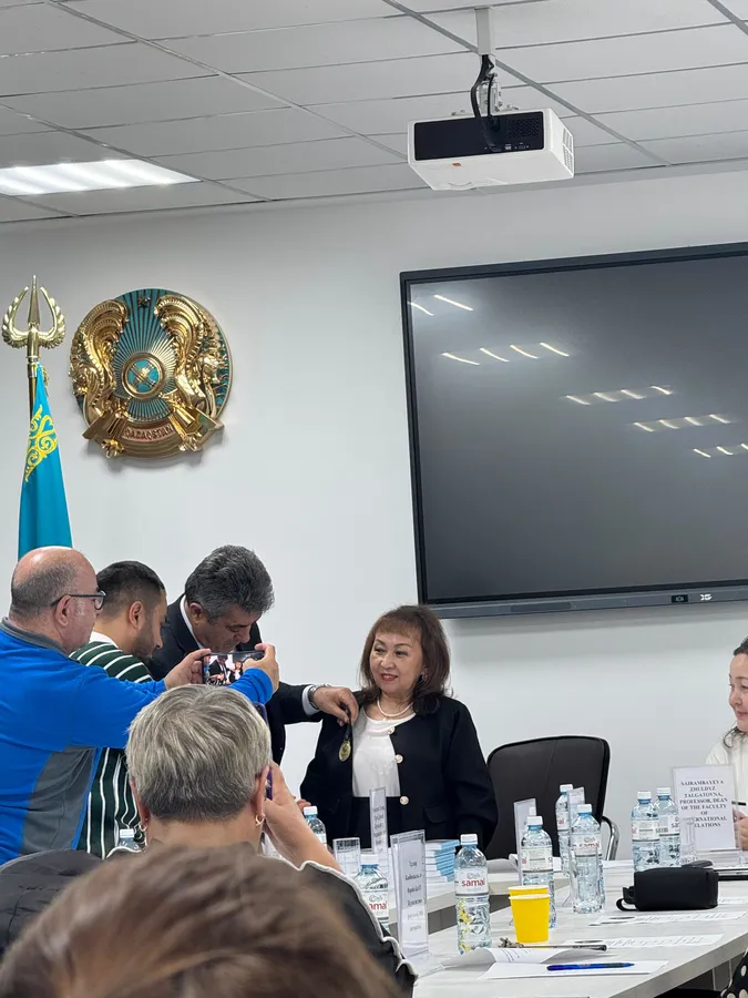 Etkinliğe Uluslararası İlişkiler Fakültesi Dekanı Prof. J. Sayrambayeva, Diplomatik Tercüme Bölümü Başkanı Prof. M. Murzagaliyeva, Prof. K. Makaşeva,