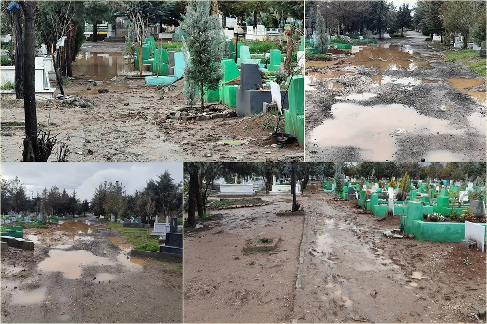Kentin en büyük mezarlığı olan Yeniköy Mezarlığında her yağış sonrası aynı manzara yaşanırken, vatandaşlar mezarlıkta herhangi bir önlem alınmamasına tepki gösterdi.