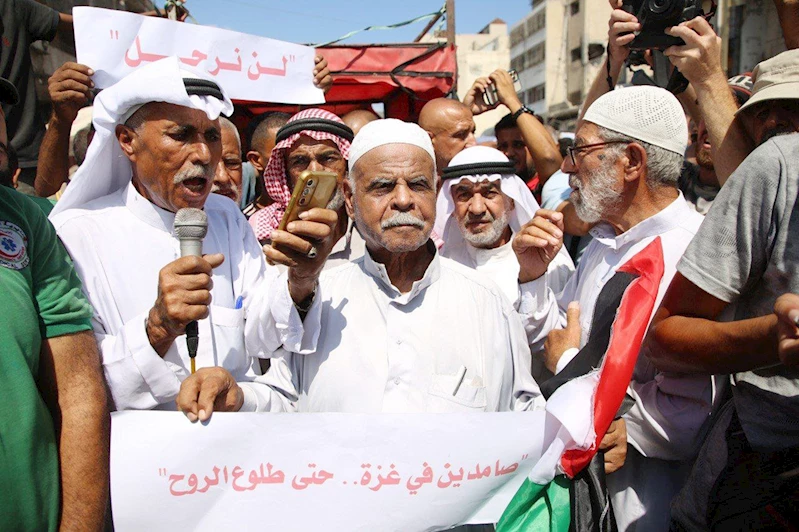Protestocular, Gazze'ye yönelik ablukanın kaldırılmasını, insani yardımların girişine izin verilmesini ve zorla göç ettirme planlarının durdurulmasını talep etti. (İLKHA)