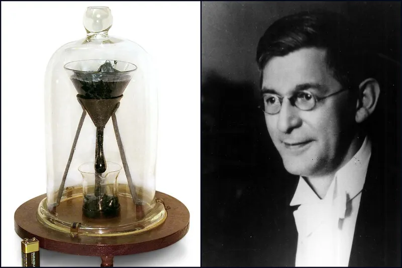 O andan itibaren siyah renkli madde akmaya başladı, ya da en azından bilimsel anlamda akmaya. Oda sıcaklığında katı gibi görünen pitch, gerçekte sudan yaklaşık 100 milyar kat daha viskoz bir akışkan. Bu nedenle ilk damlanın alttaki beher kaba düşmesi tam sekiz yıl sürdü.