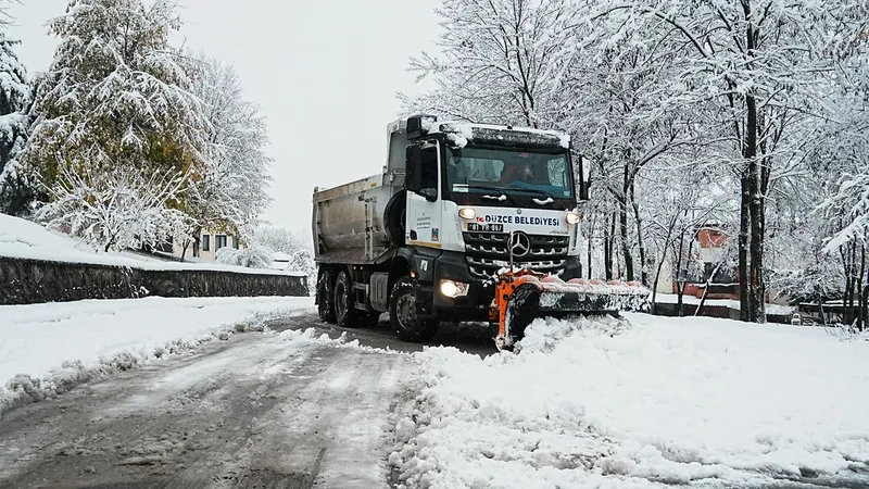 Düzce’de kar yağışı öncesinde hazırlıklarını tamamlayan Düzce Belediyesi, ilk karın düşmesiyle birlikte teyakkuza geçti. 33 araç ve 196 personelden oluşan ekipler, 24 saat esasına göre çalışmalarını sürdürüyor.