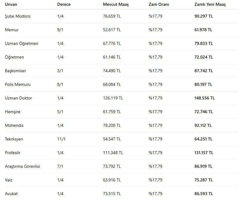 Doktor, öğretmen, polis ve kamu çalışanlarının maaş zammı da memur zammı oranına paralel şekilde artacak.