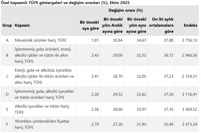 Türkiye İstatistik Kurumu (TÜİK) verilerine göre, 2025 yılı Ekim ayında TÜFE (Tüketici Fiyat Endeksi) aylık yüzde 2,55, yıllık ise yüzde 32,87 arttı.