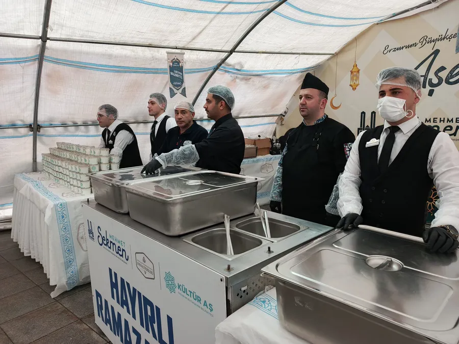 Erzurum Büyükşehir Belediyesi, Ramazan ayının bereketini ve paylaşma kültürünü şehrin kalbinde yaşatmaya devam ediyor. Tarihi Narmanlı Camii önünde kurulan Aşevi Çadırında vatandaşlarla bir araya gelen Büyükşehir Belediye Başkanı Mehmet Sekmen, kazanların başına geçerek vatandaşlara sıcak yemek ikramında bulundu.