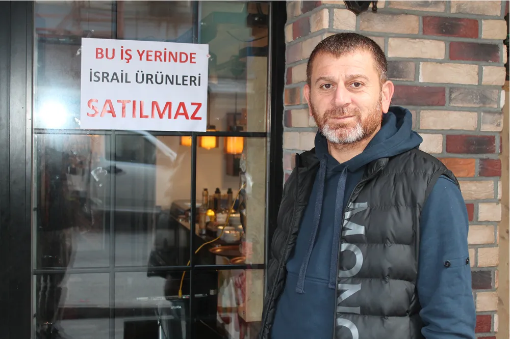 İstanbul Üsküdar'da bir kafe işletmecisi, aldığı boykot kararı sonrasında işletmesinin camına "bu işyerinde israil ürünleri satılmaz" yazısını asmanın yanı sıra, işletmenin olduğu sokağa dev Türkiye, Filistin Bayrağı ve Ebu Ubeyde posteri astı.