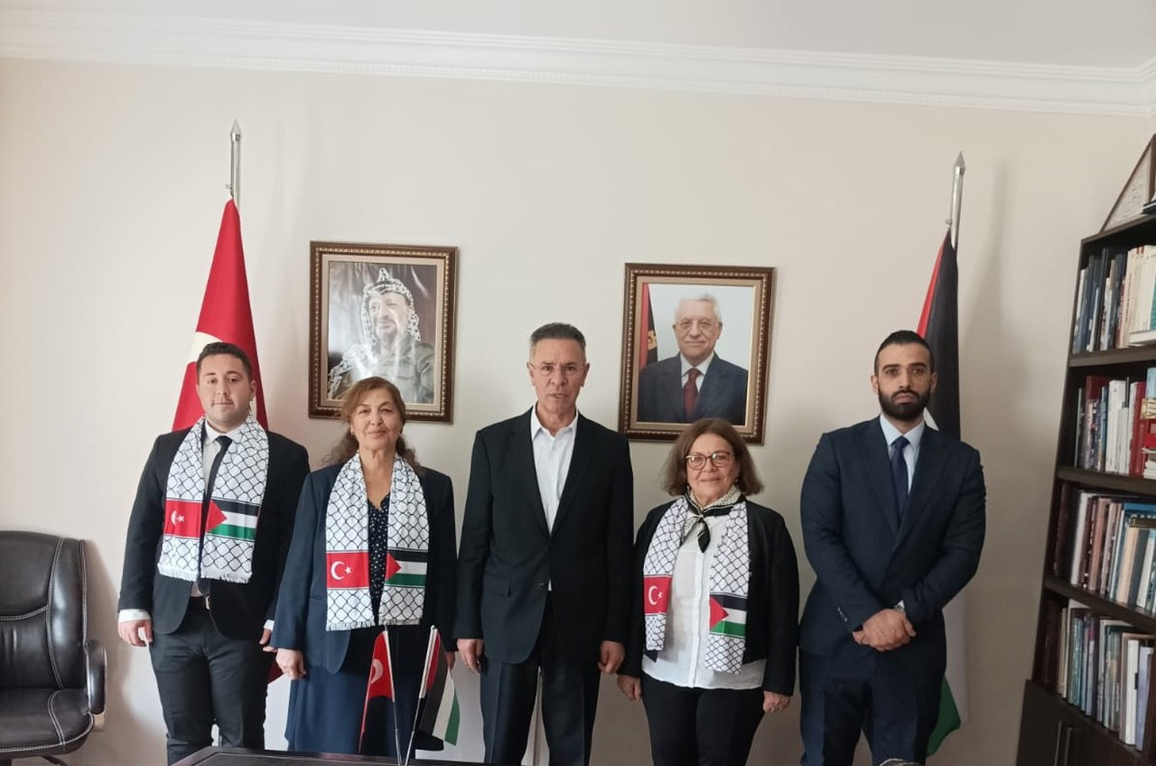 Heyet de Gazze’de yaşanan katliamlar için başsağlığı dileyerek Filistin halkının yanında olduklarını söylediler. Büyükelçi Mustafa’yı Cumhuriyetimizin 100. yılı için düzenlenen ve Filistin direnişine atfedilen büyük yürüyüşe davet ettiler. Yürüyüşün antiemperyalist bir temeli olduğunu söylediler.