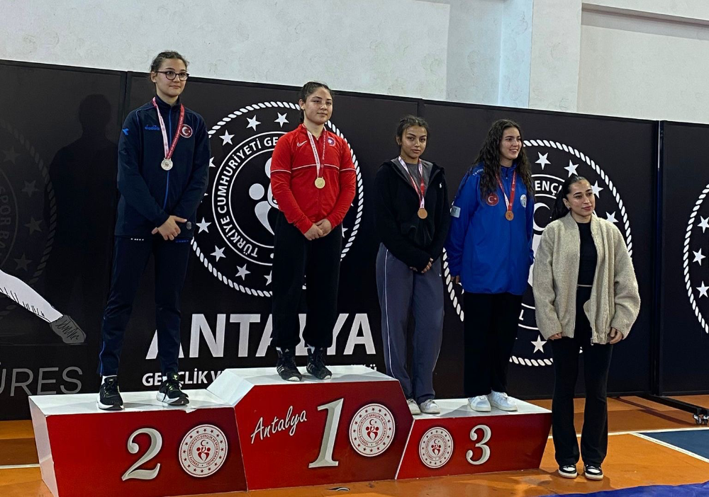 “Minderin Sultanları” olarak anılan Finikeli sporcular, azimleri, disiplinleri ve mücadeleci ruhlarıyla izleyenlerden tam not aldı. Şampiyonada 43 kiloda Meryemsu Akkaya ve 57 kiloda Asude Ela Çapaş, kilolarında il birincisi olarak altın madalyaya uzanırken, 61 kiloda Elif Gültekin ile 65 kiloda İlknur Akkaya ise il üçüncüsü olarak bronz madalya kazandı.