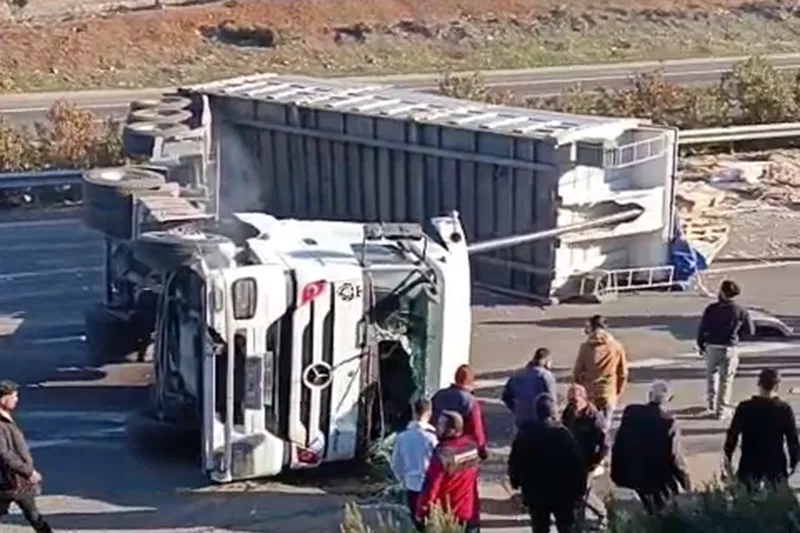 Edinilen bilgilere göre kaza, Gaziantep-Nizip Otoyolu üzerinde henüz belirlenemeyen bir nedenle meydana geldi. Tırın devrilmesi sonucu tırda bulunan fayanslar yola savruldu.
