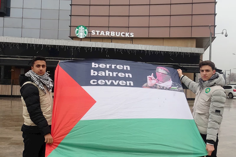 Gaziantep'te insanların yoğun olarak uğradığı bir AVM'nin bulunduğu alanda ellerinde Filistin bayrağı ve dövizler açan gençler, Filistin'de yaşananların utulmaması gerektiğini hatırlattı.