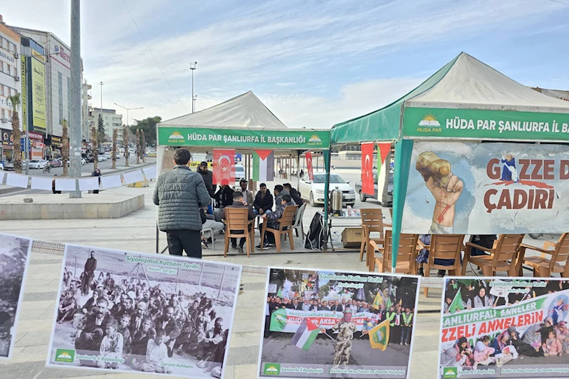 HÜDA PAR Şanlıurfa İl Başkanlığı, Rabia Meydanı’nda 7 Ekim 2024'teki Aksa Tufanı’nın ardından Gazze halkına destek amacıyla çadır kurmuştu.