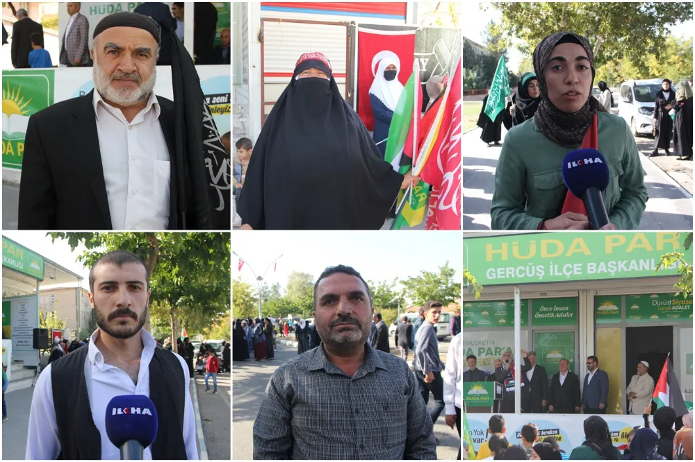 Mehmet Halit Aslan, "Bütün Müslüman halk gibi Gercüşlüler de Gazze halkının yanındadır. Zaten bütün Müslümanların olması gerektiği gibi biz de karınca misali tarafımızı belli ediyoruz. Yalnız taraf belli etmek değil, aynı zamanda Musa aleyhisselamın yanında da olmamız lazım. Sadece siyonistlere karşı durmamız gerekmiyor yani. Olması gereken direniş güçlerinin yanında olmamız lazım. Yani devletler olarak açıkçası halkının söylemleriyle hareket etmeli. Mesela bir millet tek başına hareket edemez ama devlet izin verdiği sürece insanlar ona göre bir şeyler yapabilir. Ama şu anda elimizden gelen toplanarak siyonistlere karşı durmaktır. Biz de elimizden geldiğince siyonistlere karşı durmak ve tarafımızı belli etmek amacıyla şu an siyonistlere karşı duruyoruz ve dimdik ayaktayız. Gazze halkının ve direniş güçlerinin yanındayız. Gazze'de tam bir insanlık dramı yaşanıyor ve bu insanlık dramına, Avrupa ülkeleri başta olmak üzere Sayın Cumhurbaşkanının dediği gibi de borçlu olan ülkeler siyonizme destek çıkıyor. Yalnız her Müslüman halkın ve her Müslüman devletin siyonistlere karşı bir borcu yoktur. O yüzden biz dimdik karşılarında duracağız." dedi