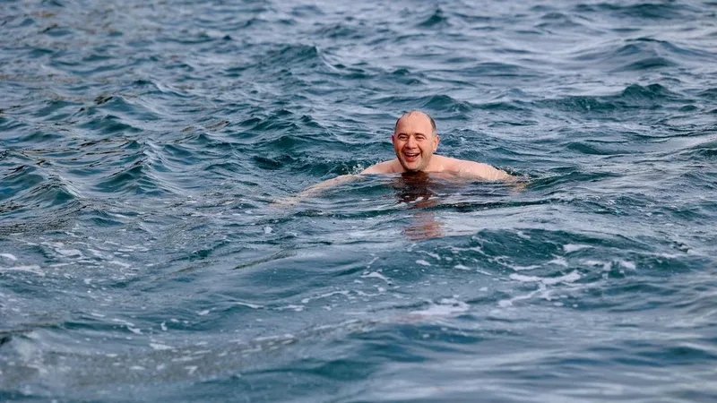 Deniz suyu sıcaklığının 6 dereceleri gösterdiği Giresun'da Giresun Valisi Mehmet Fatih Serdengeçti, denize girerek soğuk sularda bir süre kulaç attı.