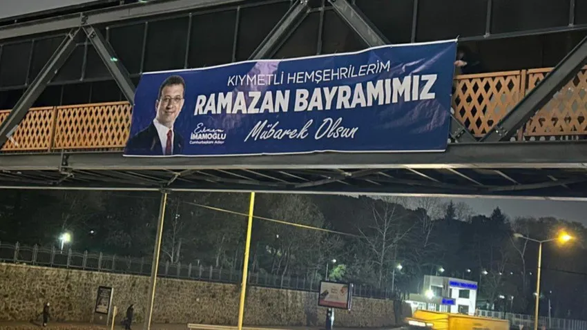 Trabzon’da Ramazan Bayramı kutlamaları kapsamında CHP Trabzon İl Başkanlığı ve CHP Akçaabat İlçe Başkanlığı tarafından şehirdeki bazı üst geçitlere asılan İstanbul Büyükşehir Belediye Başkanı Ekrem İmamoğlu’nun bayram afişleri, Karayolları Genel Müdürlüğü (KGM) ekiplerince kaldırıldı.