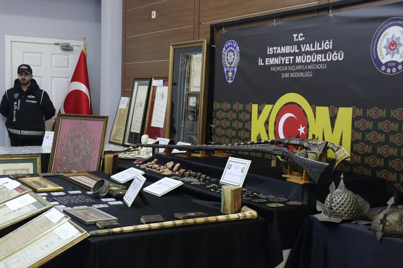İstanbul Emniyet Müdürlüğü Kaçakçılık Suçlarıyla Mücadele Şube Müdürlüğünce, Beylikdüzü, Pendik ve Tuzla ilçelerinde 2 ikamet adresi ve 1 iş yerine düzenlenen operasyon sonucunda ele geçirilen binlerce tarihi eser, İl Emniyet Müdürü Selami Yıldız'ın katılımıyla sergilendi.