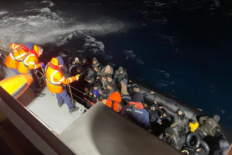 Bölgeye görevlendirilen Sahil Güvenlik Gemisi (TCSG-61) ve Sahil Güvenlik Botu (TCSG-907) ekipleri, lastik botta bulunan aralarında 3 çocuğun da bulunduğu 36 düzensiz göçmeni kurtardı. (İLKHA)